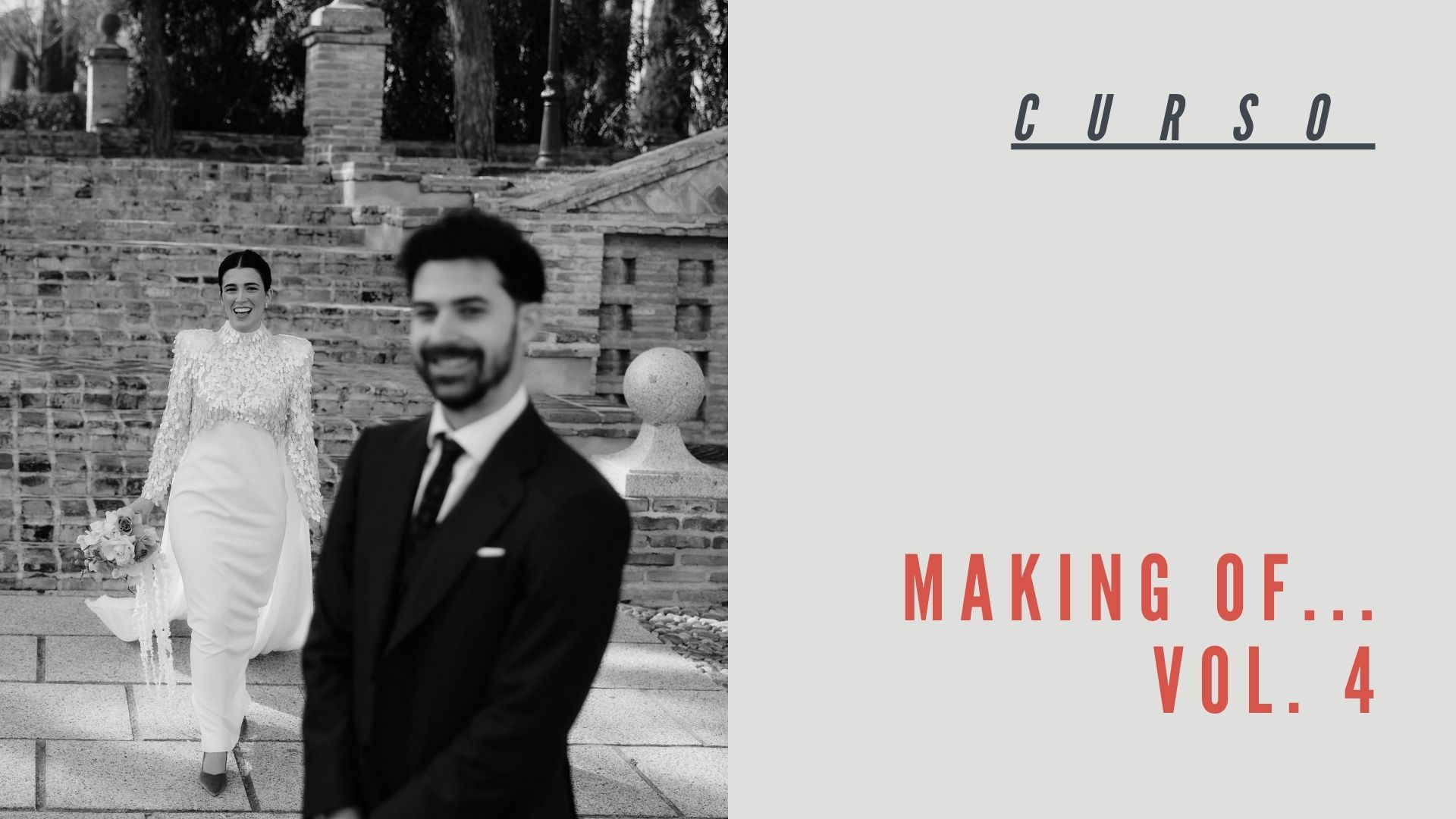 Curso práctico con seis sesiones reales de pareja durante bodas. Verás cómo tomar decisiones rápidas en distintos contextos: interiores, exteriores, ciudad, poca luz o espacios improvisados. Aprenderás a leer la luz, dirigir con intención, adaptarte al entorno y narrar visualmente con criterio, incluso cuando todo juega en contra.